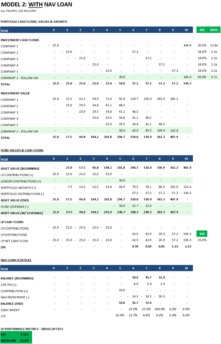 MODELLING LP RETURNS WITH AND WITHOUT A NAV FINANCING