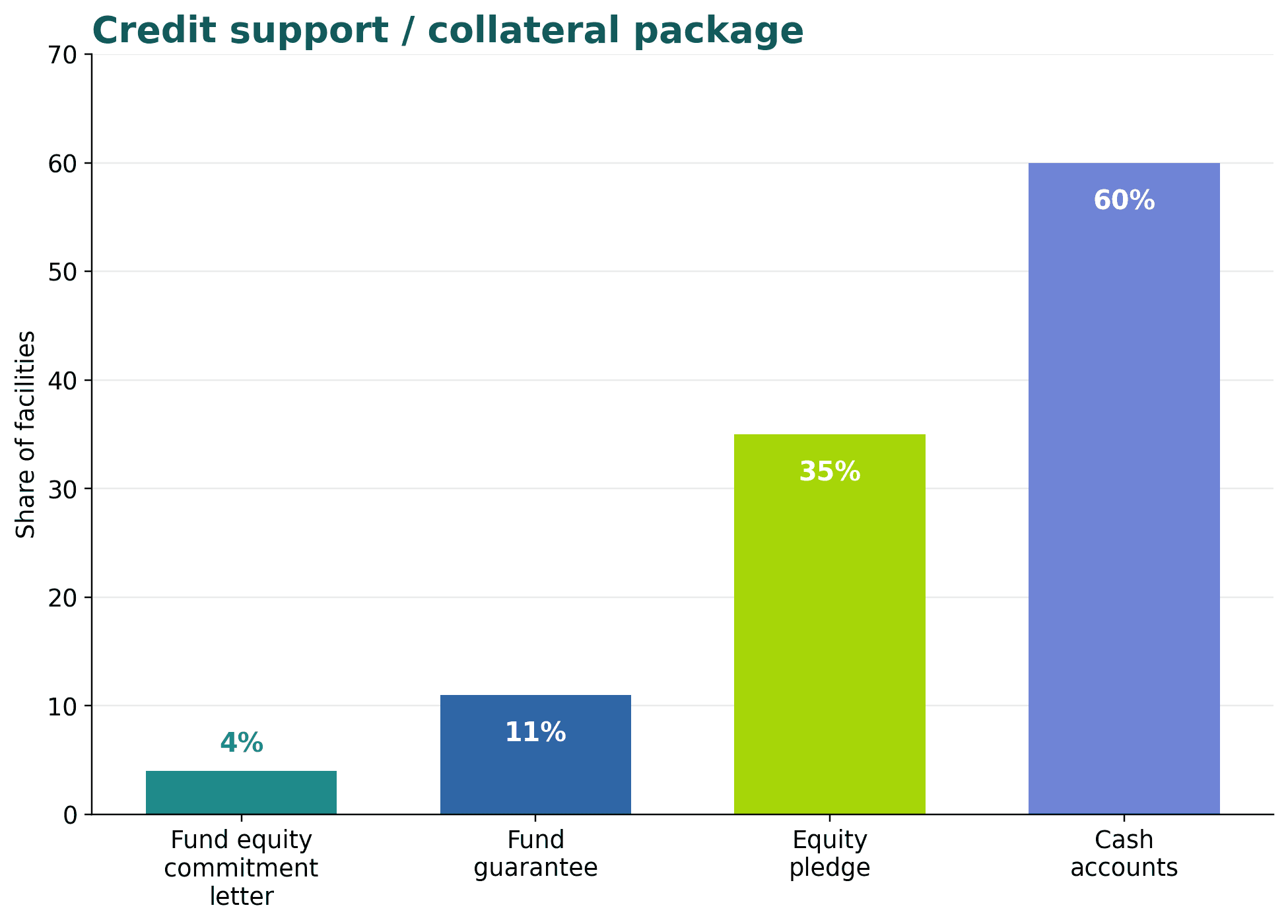 The source article highlights cash-account control as the most common form of credit support in the market. The recreated collateral-support chart preserves that ordering while modestly adjusting the figures to keep the visual original.